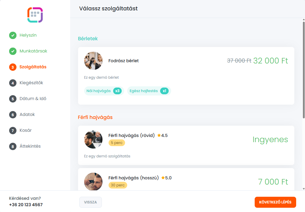 Az ügyfelek a foglalás után azonnal vagy később az ügyfélpanelen keresztül foglalhatnak időpontokat.